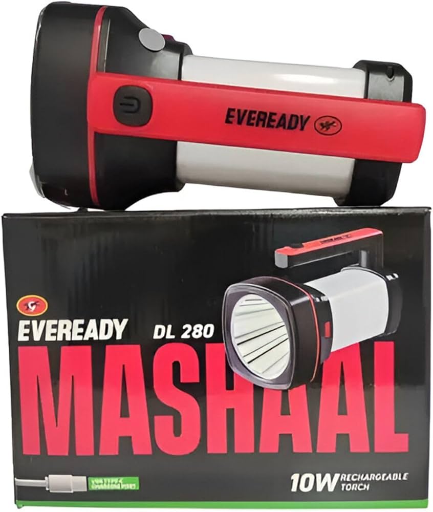 Eveready DL 280 Mashaal 10w Recharagable Charging with 7w Full Body Light wth BackUp upto 5 hours with Charging Indicator Pack of 1 (Colors may vary)