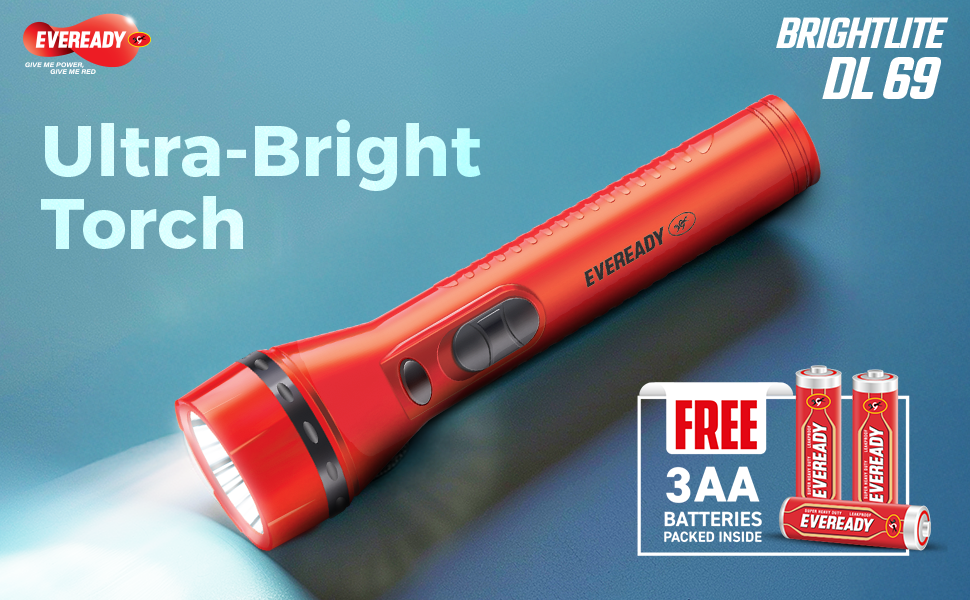 Eveready DL 02 Dazzle 1.5w torch with Free AAx3 Battery with Strong Aluminium Body Pack Of 2 (Colors may vary)